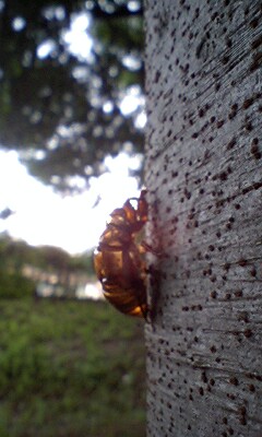 帰り道で見つけた蝉の抜け殻ゾーンには、一つの木にぱっと見だけで10匹分くらいくっついてた。