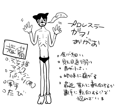 設定は、黒いブーメランパンツに軍手、足にはタビをはいておられます。